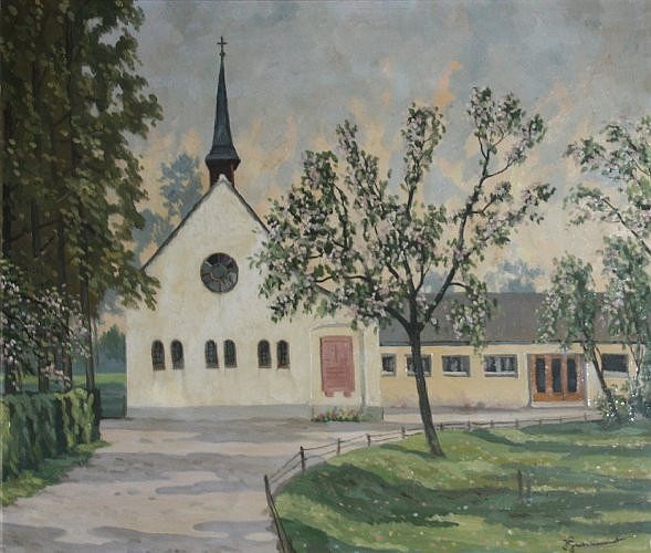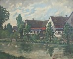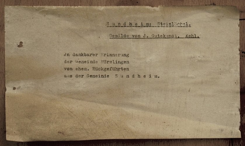 ca. 60cm x 48cm Eine Widmung auf der Rückseite weist das Bild als Geschenk der Sundheimer Evakuierten für die Gemeinde Mörslingen bei Dillingen a.d. Donau aus.