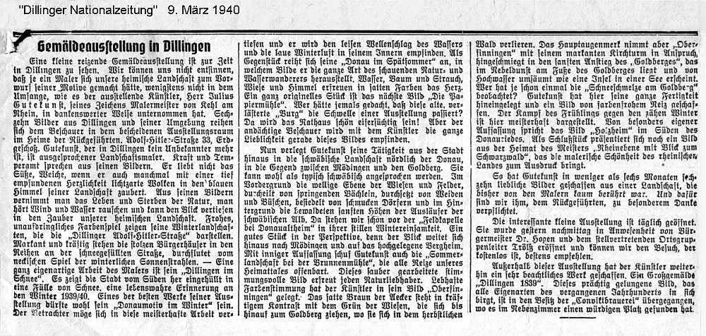 "Dillinger Nationalzeitung", 9.März 1940:  Gemäldeausstellung in Dillingen