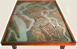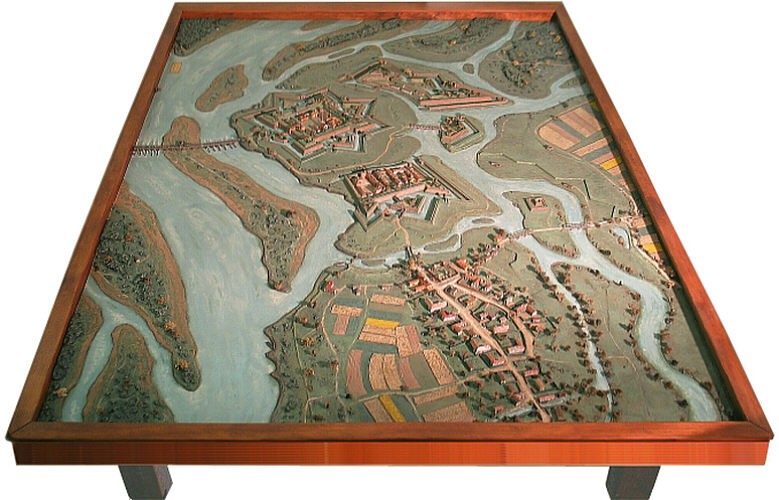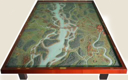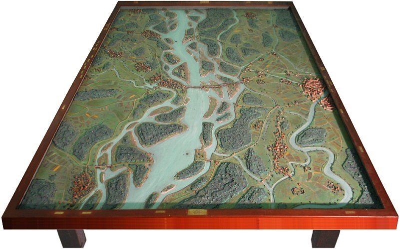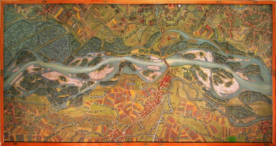 vor der Begradigung durch Tulla, Relief ca. 420cm x 215cm, erstellt von Julius Gutekunst, Klaus Hornung und Walter Köhler - Maßstab 1:2500