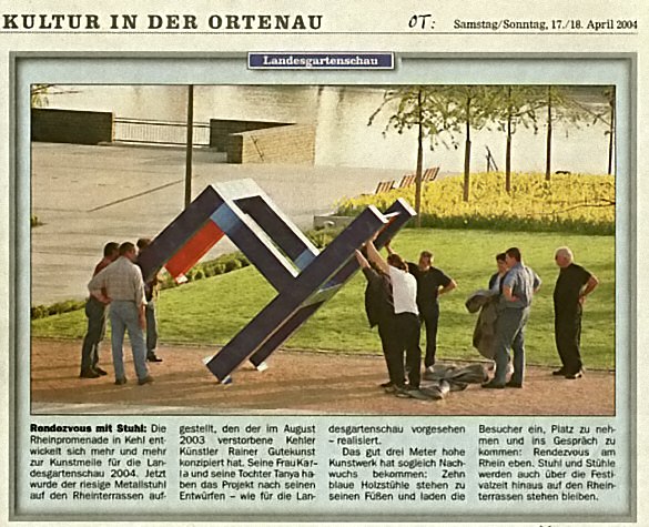 Der riesige Metallstuhl, den der im August 2003 verstorbene Künstler für die Landesgartenschau in Kehl 2004 konzipiert hat |