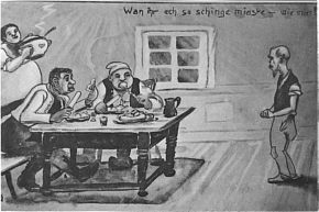 In seinen Karikaturen nimmt er Gedankenlosigkeit und fehlendes Mitgefühl im Umgang mit Bedürftigen aufs Korn. |